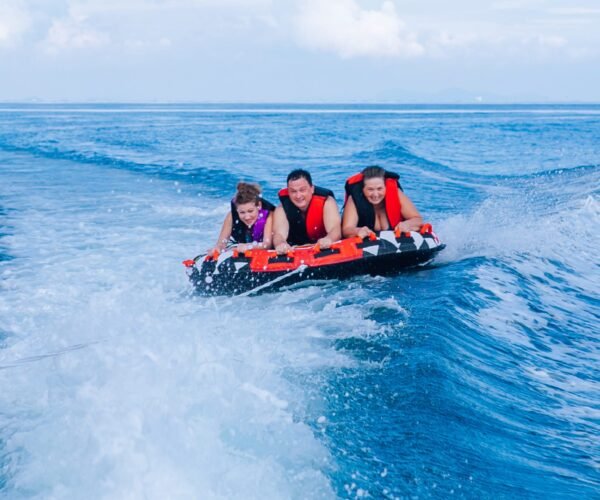 As the boat accelerates, you’ll skim over waves, spin in circles, and experience sharp turns that toss you and your friends over splashes. The speed will be adjusted based on your comfort: from a gentle cruise for relaxing moments to a more dynamic ride for thrill-seekers. All the while, you enjoy amazing coastal views, fresh sea breeze, and bursts of laughter as you bounce and glide across the water.