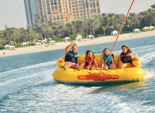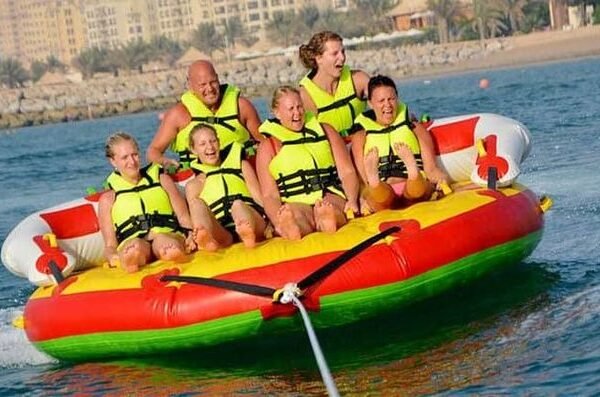 Get ready to hold tight and splash into fun with the Donut Ride in Dubai. This inflatable tube ride—shaped like a donut—is towed behind a speedboat for an exhilarating spin over turquoise waters. Ideal for friends, couples, or families looking for laughter, speed, and coastal views. Reserve your slot now to ride the waves and create unforgettable water memories.