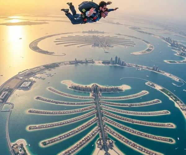 Skydive Dubai offers one of the most breathtaking ways to witness the beauty of the city. Beginners can jump in tandem with certified instructors, securely harnessed and guided throughout the dive.